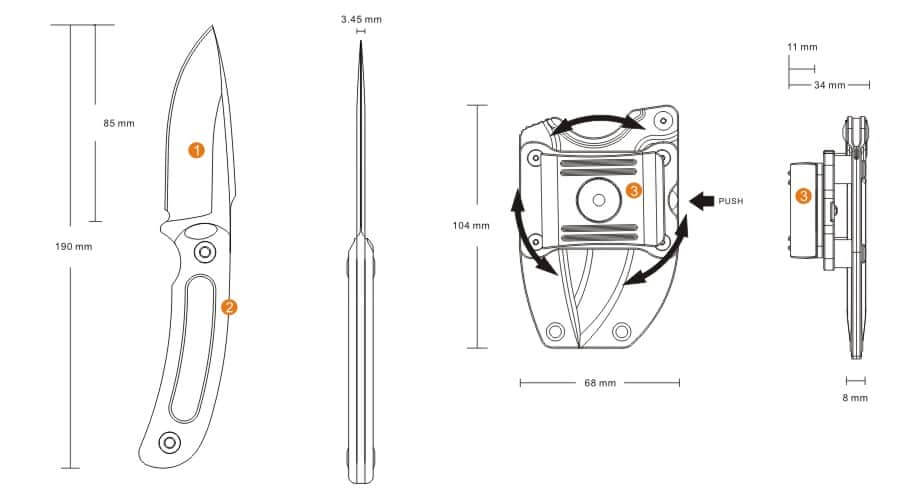 Matériau de la lame : Acier inoxydable 14C28N (58 ~ 60 HRC)