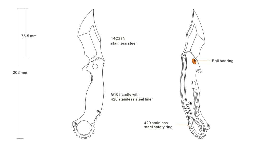 Développé à partir des couteaux Karambit, le Ruike P881 est conçu pour les utilisateurs qui recherchent un outil fiable, robuste et taillé pour les conditions exigeantes. Avec son design tactique affirmé, sa construction solide et sa grande sécurité d’utilisation, il se positionne comme un excellent compagnon pour le terrain, le bushcraft ou un usage EDC renforcé.